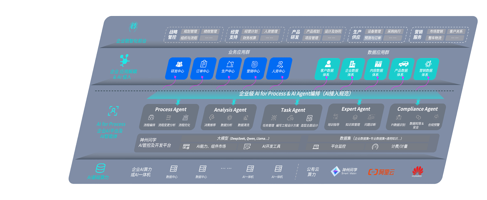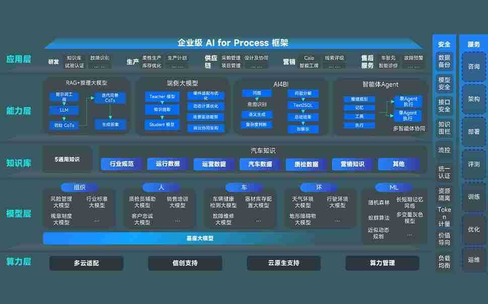 端到端的一站式AI工作空间深度融合了从企业战略规划到日常经营的全流程业务板块,,,,定向解决车企内部领域多、、部门多、、链条长、、、、场景碎片化等难题,,支持车企快速构建以AI为核心的生产力写作体系,,,实现任务执行与AI能力的无缝集成与交互